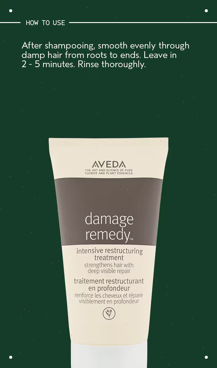 • formulated with essential protein and lipids, this reparative treatment intelligently targets damaged hair sites, helping reinforce the integrity of the hair from roots to ends.