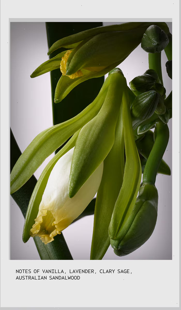 Aroma: • Soothing Pure-Fume™ aroma with lavender, clary sage, Australian sandalwood, vanilla, and other pure plant and flower essences