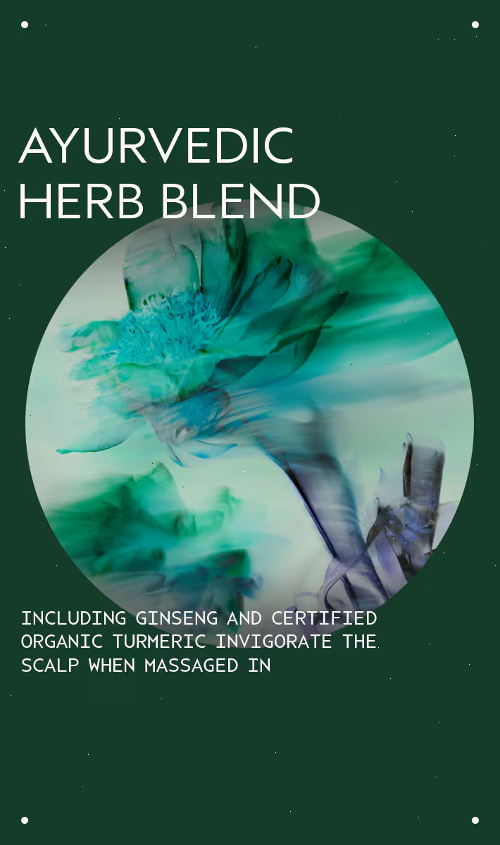 Ayurvedic herb blend • Includes ginseng and certified organic turmeric • Invigorates the scalp when massaged in