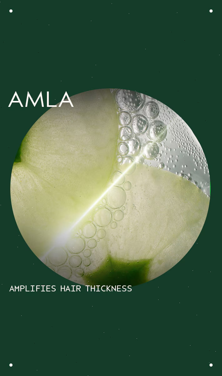 Organic Amla • A highly potent CO2 extract used to amplify hair thickness. Instantly increases the diameter of the hair shaft to thicken and lift hair at the root. Our amla is responsibly-sourced from organic farms in India. Learn more.