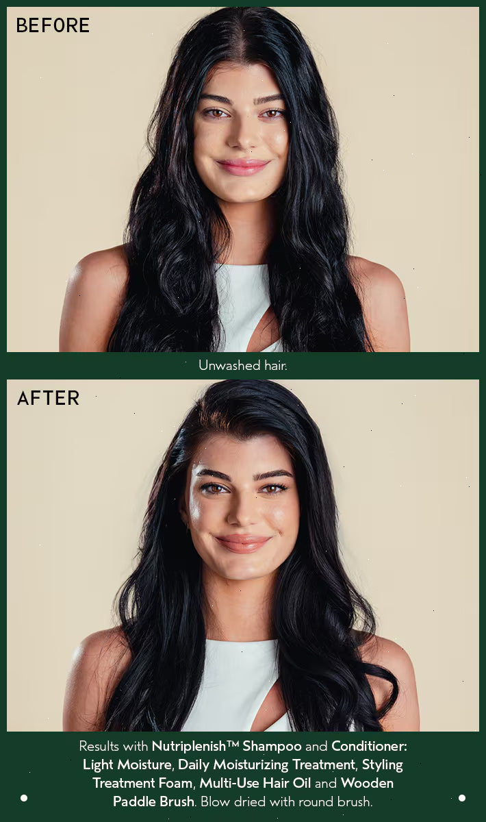 *4 times the hydration of untreated hair. **From plants, non-petroleum minerals or water ***compared to nutriplenish™ leave-in conditioner