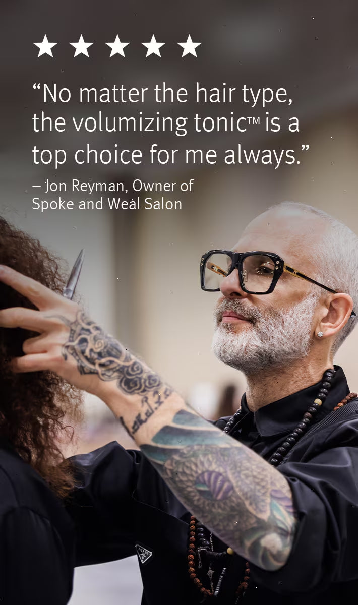 Spray on damp hair, focusing on roots. Rough dry with a blow dryer, lifting sections of hair and spraying volumizing tonic™ near the scalp. Use a round brush or Velcro rollers to further enhance volume. Works on all lengths of hair, including when styling short hair.
